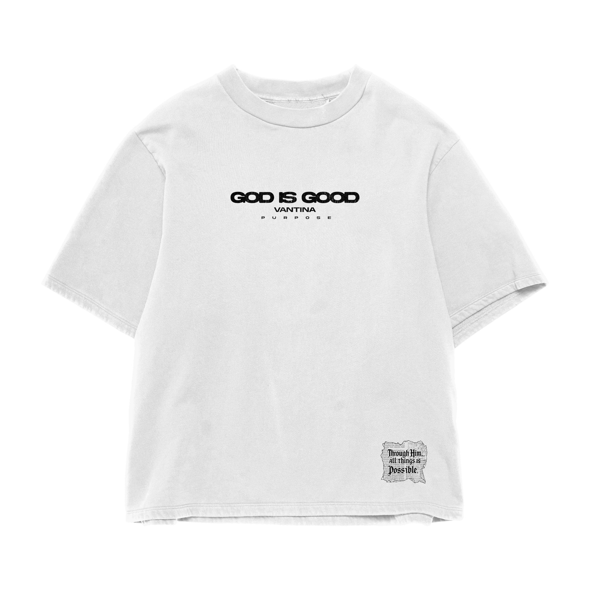 This tee is not just worn — it’s lived in. A reminder stitched in cotton: God is good, all the time.