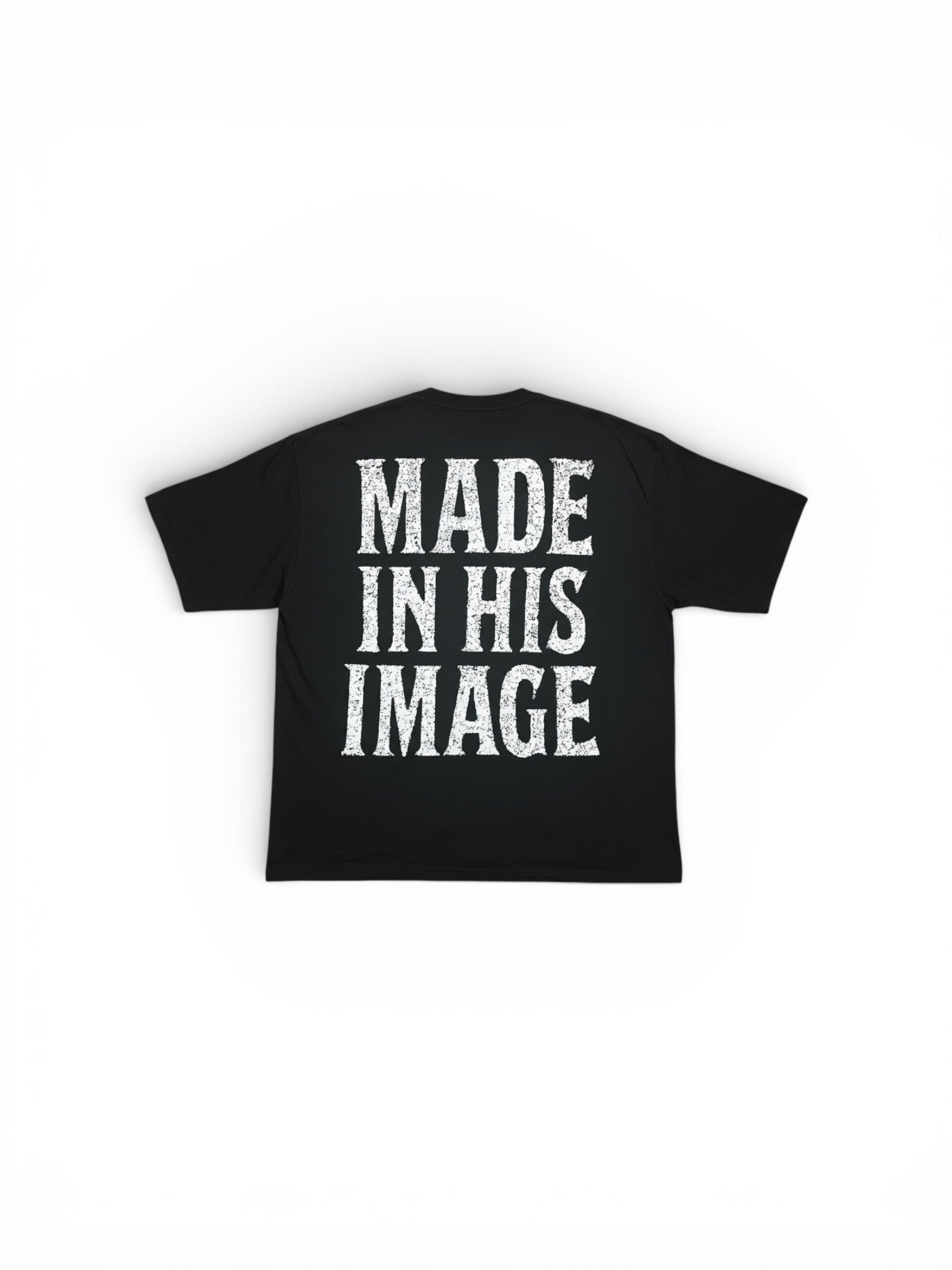 - Back: Oversized MADE IN HIS IMAGE typography